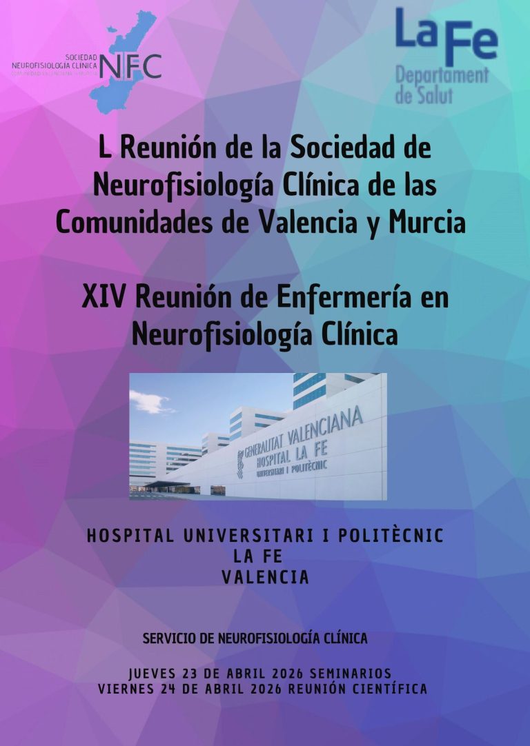 Ya está disponible el programa de la L Reunión de la Sociedad de Neurofisiología Clínica de las Comunidades Valenciana y Murcia, que se celebrará junto a la XIV Reunión de Enfermería en Neurofisiología Clínica los próximos 23 y 24 de abril de 2026 en el Hospital Universitari i Politècnic La Fe (Valencia).